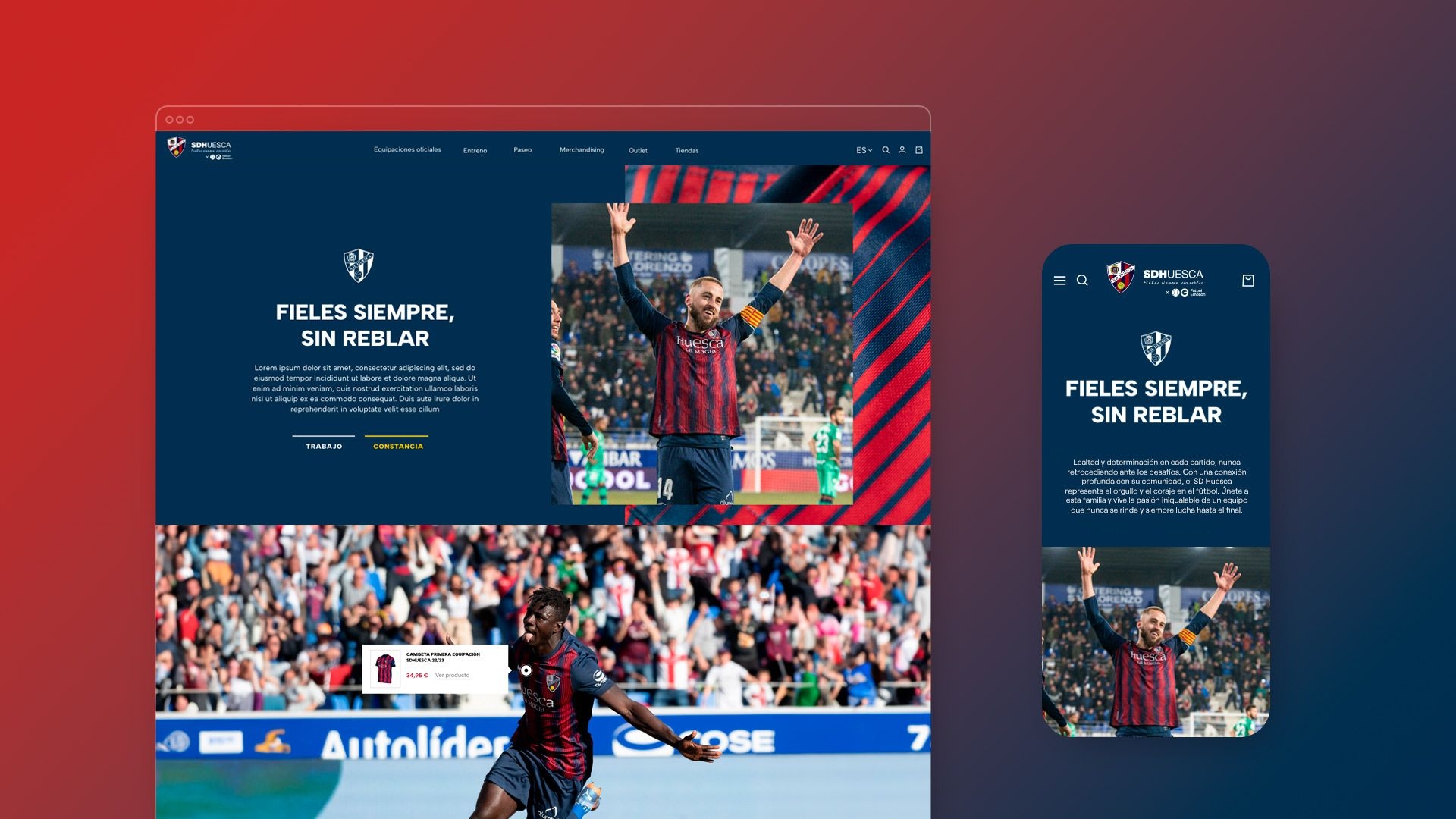 El diseño y desarrollo del nuevo eCommerce de la Sociedad Deportiva Huesca actualiza la presencia digital del club, incluyendo una cuidada presentación del producto, mejorando la usabilidad y generando una navegación fácil e intuitiva.