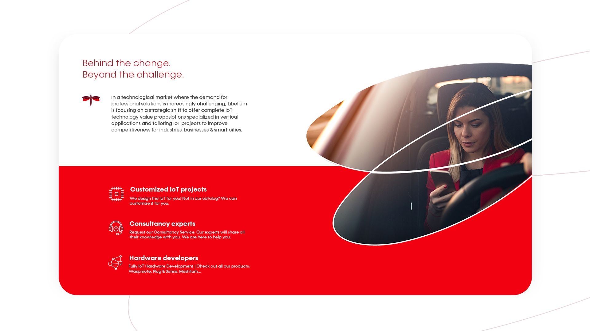 Con una reconocida trayectoria a nivel mundial, Libelium vivió una transformación de fabricante de hardware de sensores a proveedor de soluciones completas. La compañía decidió aprovechar esta nueva etapa como una oportunidad para evolucionar la compañía tanto por dentro como por fuera. El reto consistía en una revolución visual y digital que consolidara su posicionamiento como referente nacional e internacional del IoT.