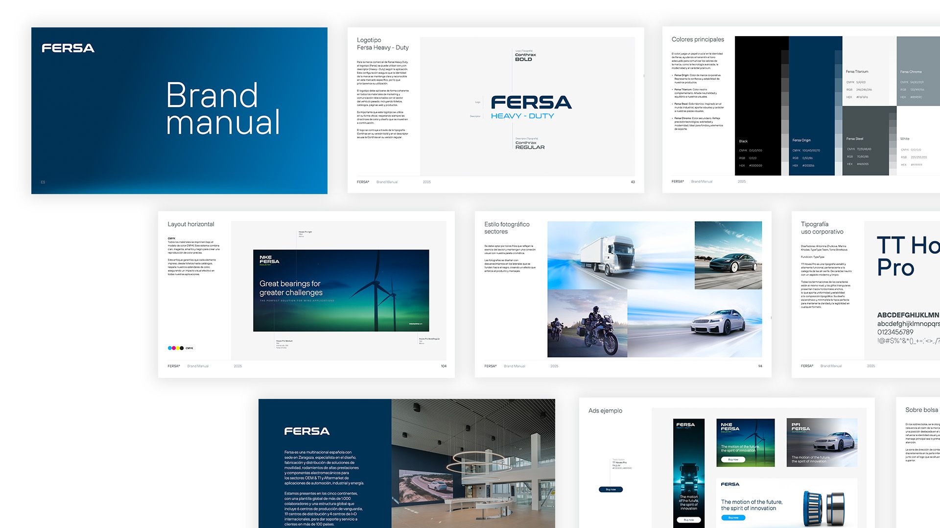 Creamos un sistema de marca unificado, coherente y escalable para todo el grupo Fersa y sus distintas marcas comerciales, definiendo un universo visual y verbal alineado con su posicionamiento de liderazgo. El nuevo branding se construyó sobre el concepto de movimiento, reflejando los valores de excelencia, innovación y tecnología que definen a Fersa, bajo el concepto Excellence beyond bearings.