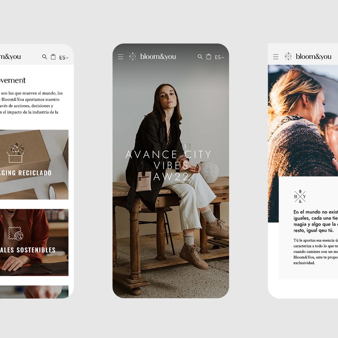 Todo el universo de marca lo hemos plasmado en un eCommerce muy visual que proyecta los valores diferenciales de Bloom&You. Partimos de una fase inicial de análisis e inspiración, seguida de un importante trabajo de UX para lanzar un eCommerce que genera una experiencia de compra fácil y muy intuitiva. El resultado es un diseño y desarrollo a medida que no solo permite comprar sus diseños de calzado y complementos, sino que además lo convierte en un espacio de inspiración gracias a su blog y su sección Editorial.